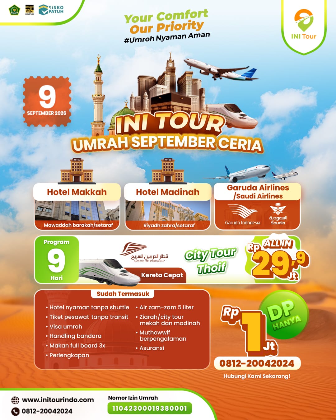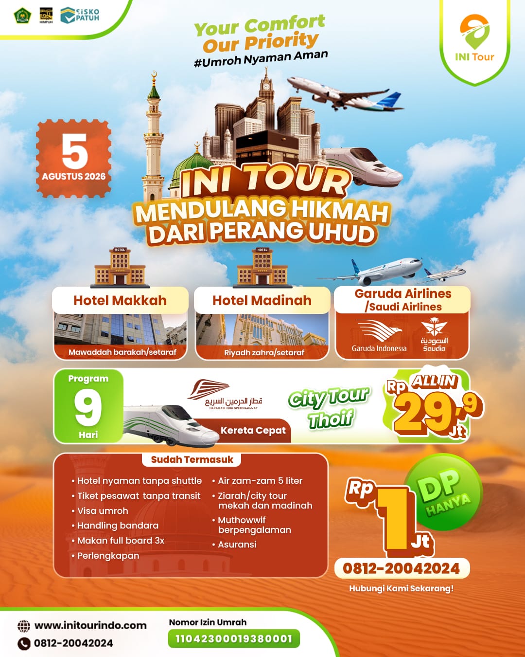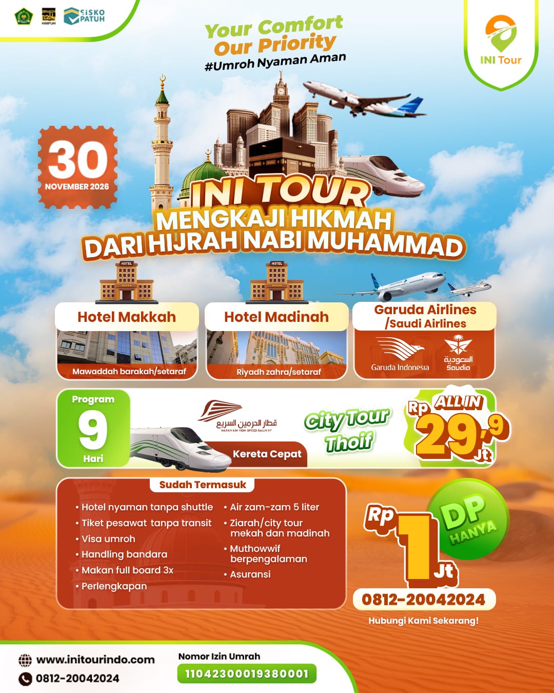 INI Tour terdaftar resmi, berizin lengkap, patuh regulasi pemerintah Indonesia, serta memenuhi ketentuan negara tujuan jamaah.